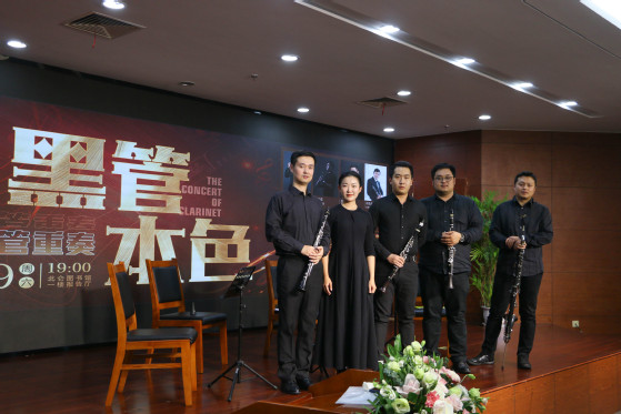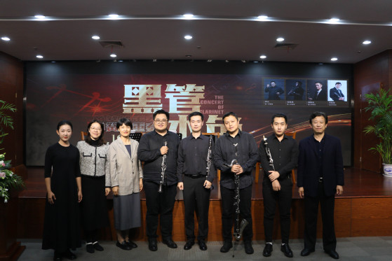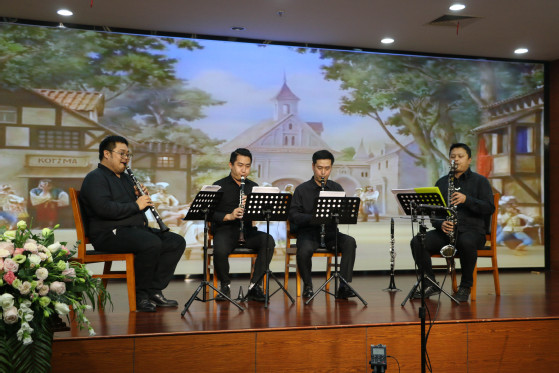 2022年11月19日晚,宁波职业技术学院图书馆在一楼报告厅举办了“仑图悦享”音乐艺术鉴赏暨宁职艺韵第35期---“黑管本色”单簧管重奏专场音乐会。本场音乐会由胡蕴子老师主持,四位演奏者分别来自于俄罗斯圣彼得堡国立音乐学院里姆斯基科萨科夫单簧管表演专业的李凡博士、西北师范大学单簧管演奏专业的的谈俊成老师、南京师范大学单簧管演奏专业的顾阳光老师,以及毕业于法国南锡国立音乐学院单簧管演奏专业的周晶晶老师。