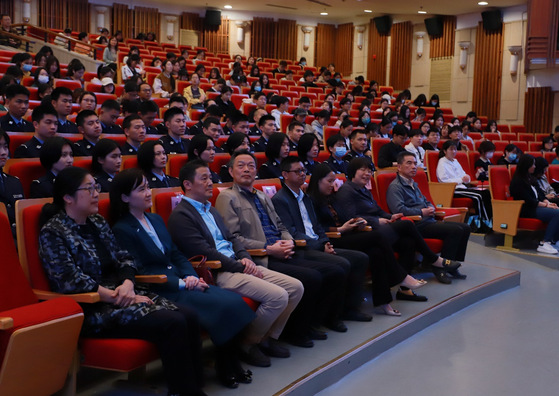 讲座开始前,来自学校现代信息技术学院、数字商贸学院、增材制造学院、智慧交通学院的百余位同学,一起参与到师生《大学》选段共读经典活动中。“大学之道,在明明德,在亲民,在止于至善。……”整齐划一的诵读声激励着在场的师生阅读经典,启迪智慧。