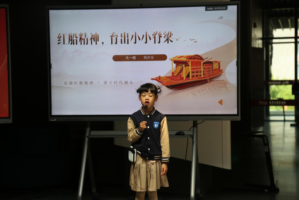 随后,园长妈妈在表达诚挚谢意的同时,对孩子们寄予殷切期望。她希望孩子们在参观图书馆的过程中浸润书香,汲取精神养分;在红色故事分享与亲子演绎中,用声音与情感回溯历史英雄人物;通过亲手搭建红船模型,在实践体验中领悟“红船精神”的深刻内涵,让红色基因在亲子协作中薪火相传。