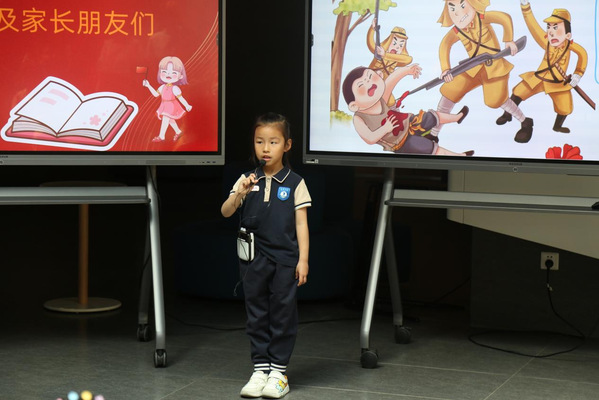 大一班钱亦安带来的故事《红船精神育出小小脊梁——小英雄雨来》,讲述中,她模仿雨来的语气生动传神,坚毅的眼神、投入的神态,将小英雄的果敢与无畏展现得淋漓尽致,仿佛带领听众穿越时空,一同见证雨来的英勇时刻。