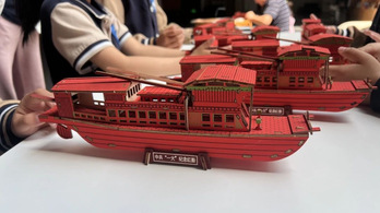 亲子红船搭建环节,每个家庭都默契配合。家长凭借经验引导,孩子迸发创意参与。有的家庭研究图纸时,孩子率先提议“先搭船身再装桅杆”,获得家长赞许;还有母女合力粘贴船帆,小女孩边贴边说要贴整齐才能“扬帆”。
