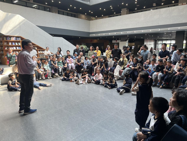图书馆二楼大厅内,嘉兴大学学报编辑部主任、图书馆副馆长高慧敏亲切走到孩子们中间,眼神中满是对活动的期待与重视。致辞中,他热情欢迎参与活动的师生及家长,并寄语孩子们从红色故事中汲取精神力量,传承红色基因,让红船精神在幼小的心灵中生根发芽、永续传承。