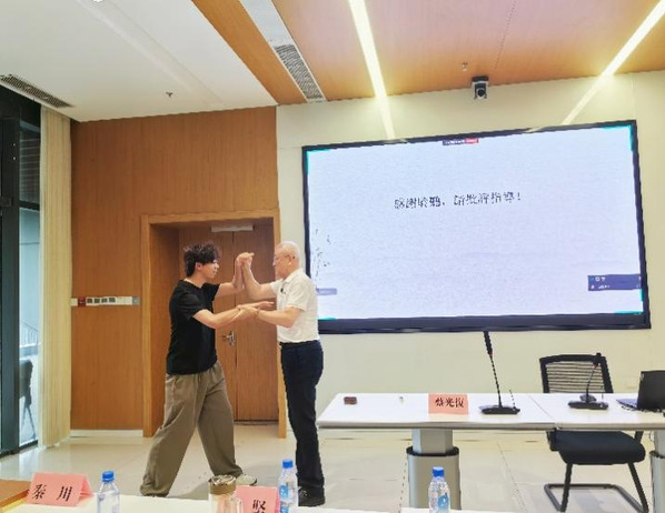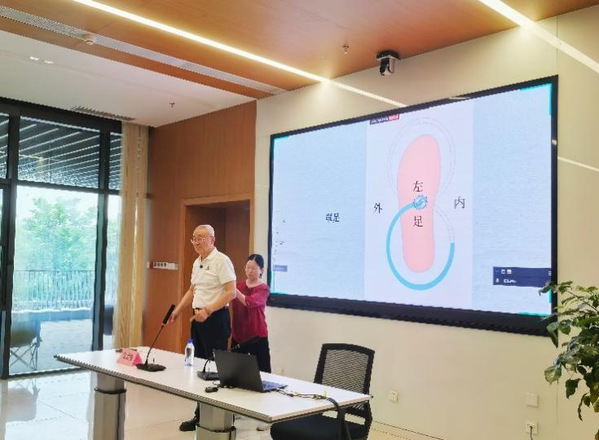 讲座中,蔡光復先生以“太极拳锻炼解析”为主题,系统阐释了太极拳的核心要义。他结合专业视角,对呼吸调控、身法要领、步法转换等基础要素进行分层讲解,并通过动作示范解析技术细节。同时,他巧妙地将太极拳与中华传统文化相结合,深入挖掘太极拳背后所蕴含的人生哲理,引导师生们领悟传统养生文化的智慧。在互动环节,蔡光復先生与在场师生演示互动,让师生更为直观地体验展现太极拳的技击美学与文化魅力。