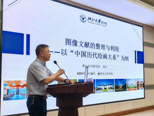 浙江大学图书馆资源发展总监张军则聚焦“图像文献的整理与利用”,以《历代绘画大系》为典型案例,详细介绍了图像类传统文化文献的数字化整理方法,阐释了其在学术研究、文化传播中的重要意义,并深入探讨了中华优秀传统文化资源在图书馆领域的建设与利用路径,强调了文化自信与文化育人的重要价值。