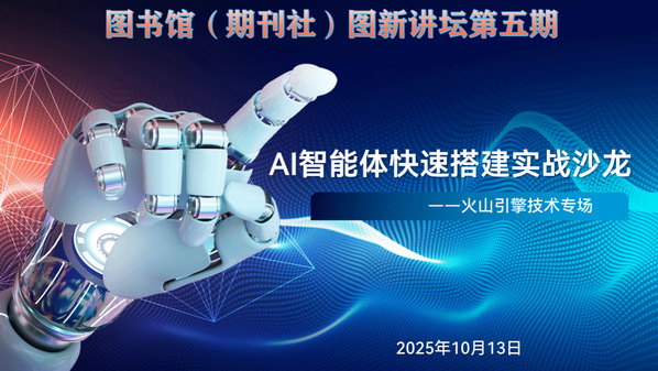 2025年10月13日,图书馆(期刊社)第五期“图新讲坛”在图书馆二楼虚拟仿真实训中心顺利举办。本次技术沙龙以“AI智能体快速搭建实战”为主题,特邀“火山引擎”技术专家团队进行专场培训,为参会者带来了一场内容丰富、实用性强的技术盛宴。