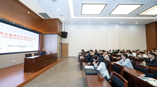 李鸿涛作题为《中医药古籍保护的现状与未来》的专题讲座,他从中医药古籍的保护与利用问题为切入点,以中国中医科学院图书馆为例,系统阐述了中医药古籍在原生性、再生性与创新性三个层面的保护工作,深入剖析中医药古籍的存藏现状、修复技术与数字化前景,向师生们普及了古籍保护的核心知识与前沿动态,更在他们心中植下了守护古籍、传承文明的使命种子。