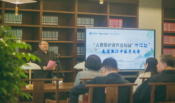 2025年11月12日下午,由国家图书馆(国家古籍保护中心)主办,浙江图书馆(浙江省古籍保护中心)、浙江中医药大学图书馆联合承办的“古籍保护课程进校园——浙江中医药大学站”系列活动在富春校区图书馆举行。