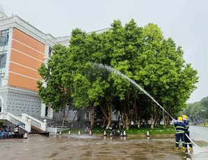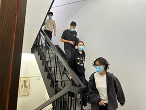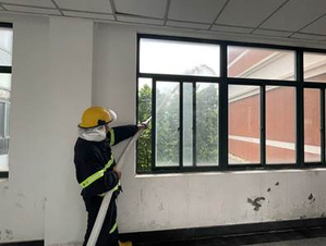 图书馆工作人员听到警报后迅速奔赴各楼层,从外馆七层和内馆五层开始,逐层向下组织疏散。工作人员一边吹响哨子,一边高声提醒:“发生火情,请靠楼梯右侧有序撤离!”学生们按照引导,低头弯腰、捂住口鼻,快速沿楼梯向下跑去。与此同时,安全保卫部接警后火速派出行动灭火组赶赴现场。队员冲向消防栓,迅速展开水带、连接接口出水灭火,进一步压制火势。