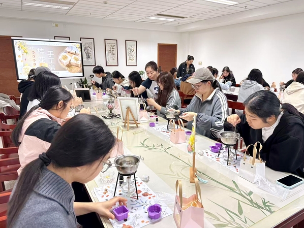 “虽然桂花谢了,但能把香气留下来,真的很浪漫。”参与的同学笑着说。手工皂的香气在掌心弥散,也在心间沉淀,它不仅是一份简单的手作,更是一段被定格的时光——有花香、有笑声,也有创造的喜悦。