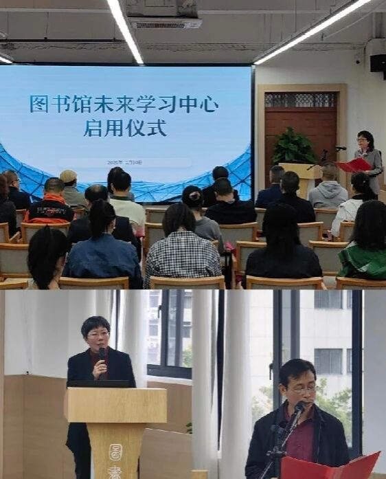 介绍环节结束后,副校长李文冰与嘉宾代表共同登台,携手启动装置。伴随着现场热烈的掌声,图书馆未来学习中心正式宣告启用,标志着我校图书馆服务与学习空间建设迈入全新阶段。