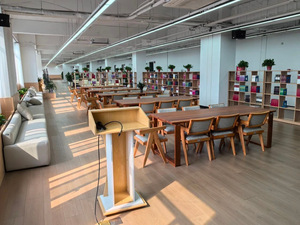 图书馆副馆长施益华向与会嘉宾详细介绍了未来学习中心的功能布局与智能服务。中心集多元学习场景于一体,不仅配备了供师生预约使用的教师研讨间、灵活组合的多媒体学习空间,更打造了涵盖3D打印、小型研讨、透明直播、休闲疗愈及艺术策展在内的多个特色功能区域,充分满足创新教学与自主研习的需求。与此同时,中心还创新引入“图小传”AI馆员与机器人,为师生提供精准的导航找书、借阅查询等智慧服务,实现科技与人文的深度融合。