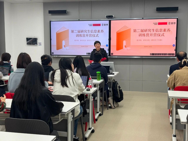 赵院长在致辞中指出,信息素养是新时代研究生开展学术研究的核心能力,直接关系到科研工作的效率、质量与创新高度。他强调,研究生院始终将研究生科研能力培养作为工作重点,人工智能时代,如何精准地获取、筛选、分析和利用信息,已成为研究生们在学术道路上前行的必备技能。信息素养不仅是学术研究的基石,更是研究生未来职业发展的核心竞争力。希望同学们能珍惜这次难得的学习机会,积极投入到训练营的各项学习活动中,在提升信息素养的同时,不断开拓学术视野,培养创新思维。并对训练营给予了高度评价和殷切期望。