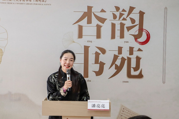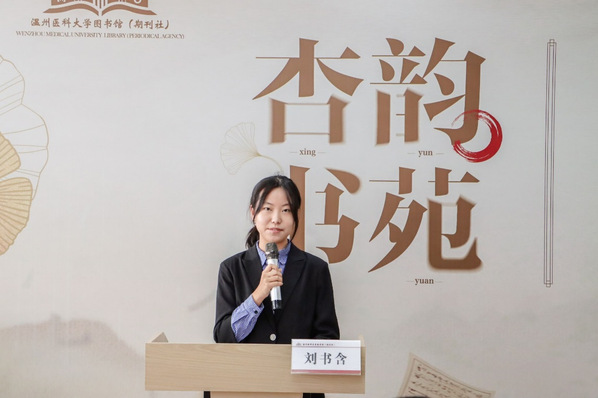 在师生代表发言环节,教师代表、教职工读书会筹备组组长潘亮亮分享了自己阅读的感悟,以及做阅读推广工作的经验体会;学生代表、第二临床医学院刘书含同学结合自身经历,表达了青年学子对阅读的热爱与对校园文化崭新空间的期待。两位代表的真挚分享,展现了温医大师生浓厚的阅读氛围与文化追求。
