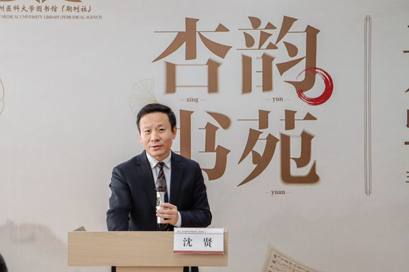 仪式上,沈贤副校长发表致辞。他指出,图书馆始终坚守“立德树人”根本任务,以师生需求为导向,持续优化服务效能、升级阅览环境,此次“杏韵书苑”的启用,更是图书馆深化文化育人功能的重要举措。该空间打破传统分区壁垒,打造藏借阅一体的复合型学习场景,设有阅读疗愈室、中华优秀传统文化主题馆及多元研讨空间,既满足师生核心学习需求,又蕴含文化传承底蕴与心灵滋养温度,为师生构筑起了一方可栖居、可疗愈、可思辨的精神家园。