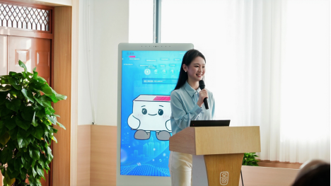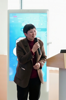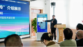 图书馆技术部主管奚永旺向参会嘉宾展示了我校“AI馆员图小传”的各项功能及使用方法,并举例示范了如何与“AI馆员图小传”互动,获取想要的资料。