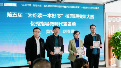 闭幕式后设置了第五届“为你读一本好书”校园短视频大赛获奖者代表交流创作经验的环节,来自我校和浙江万里学院、浙江经贸职业技术学院等团队参与了分享。