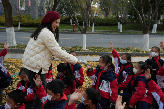 联诗诵诗结束后,进入了捐赠仪式环节。文学院党总支书记谢伟镟率先向伯鸿学子赠书,音乐与舞蹈学院副院长袁艺亲手为孩子们分发童书,阳光下的银杏林流淌着爱的温暖。伯鸿学校党总支副书记朱费英向浙江传媒学院图书馆副馆长林红志呈递捐赠证书,并深情致谢:“我们学校最鲜明的特色是书香伯鸿,浙传赠予的这些书籍不仅是浙传对我们的关爱,更是高校与我校连接的温暖纽带。”接着她又面向孩子们温柔的说道:“这里的每一本书都是会说话的老师,会带你们去看星星大海,会教你们和蚂蚁做朋友、和月亮说悄悄话。记得要轻轻翻、慢慢读,让书里的字变成你们心里的糖,书里的画变成你们眼里的光。这些书会变成翅膀,带着你们飞到更高更远的地方。”