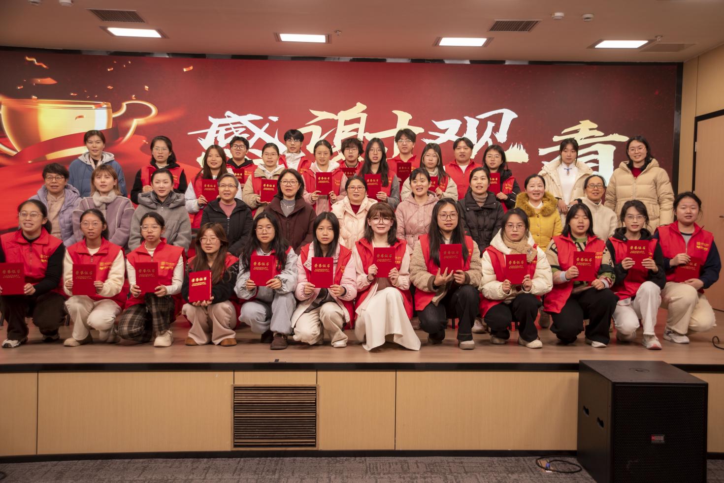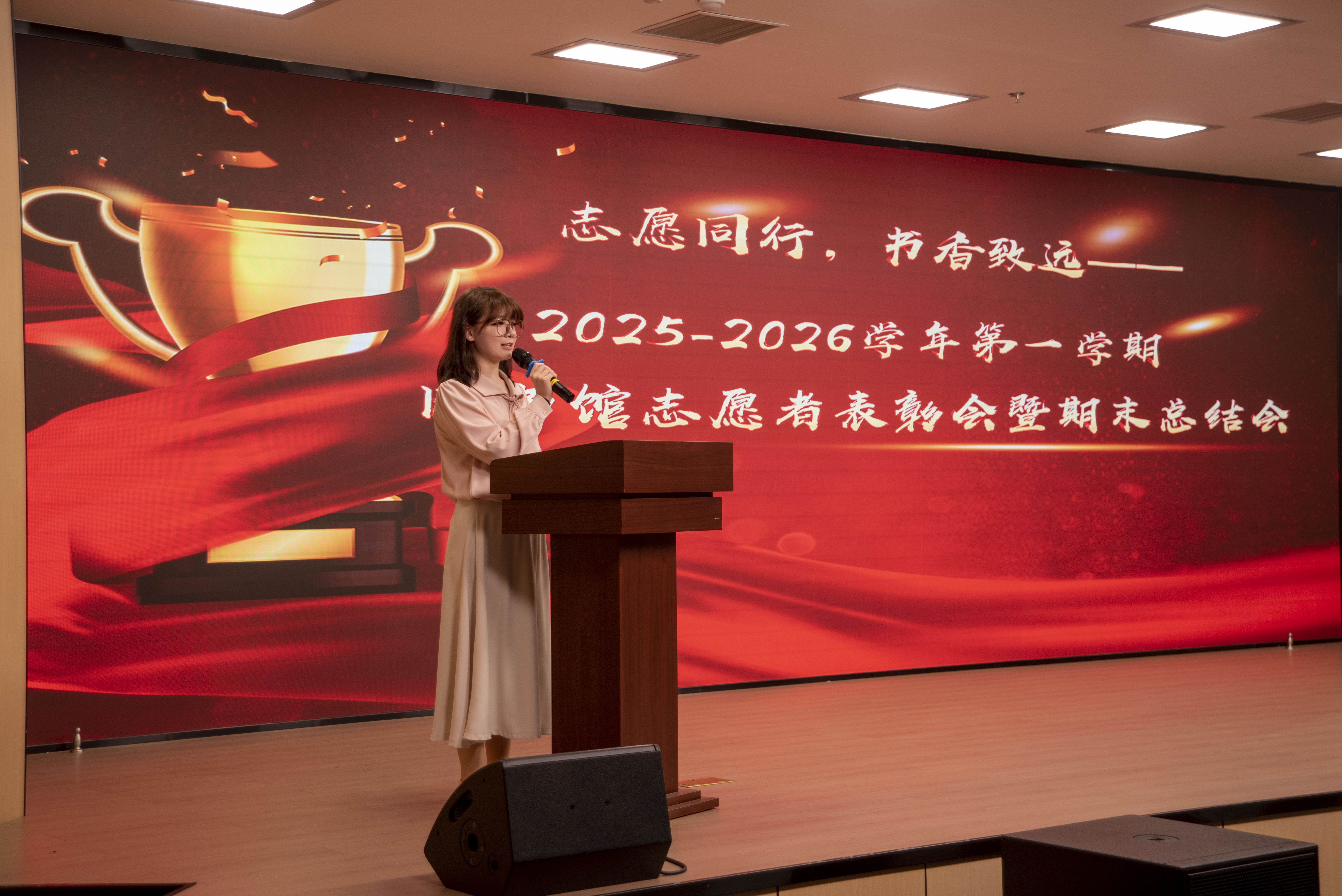 为表彰先进、凝聚共识,弘扬“奉献、友爱、互助、进步”的志愿精神,2025年12月24日中午,宁波职业技术大学图书馆2025-2026学年第一学期志愿者表彰暨期末总结大会在一楼报告厅隆重举行,图书馆全体教师和160余位学生志愿者参会。