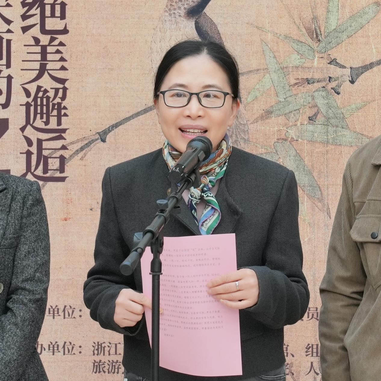应金萍发表致辞。她指出我校的馆藏巨著——《中国历代绘画大系》是盛世修典的标志性成果,堪称中国历代绘画的“百科全书”,期待它能引领师生领略华夏美学的巅峰形态,在品鉴经典的过程中增强历史自觉,坚定文化自信。同时,应金萍对青年学子提出三点殷切期望:静心欣赏词画意境,提升个人的审美与修养;认识典籍所展现的民族智慧与历史成就,增强文化认同;将文化自觉转化为行动自觉,在学习和生活中积极弘扬中华优秀传统文化。