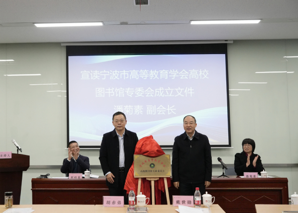戴世勋与胡赤弟共同为专委会揭牌,标志着宁波高校图书馆领域的协同发展平台正式启动。
